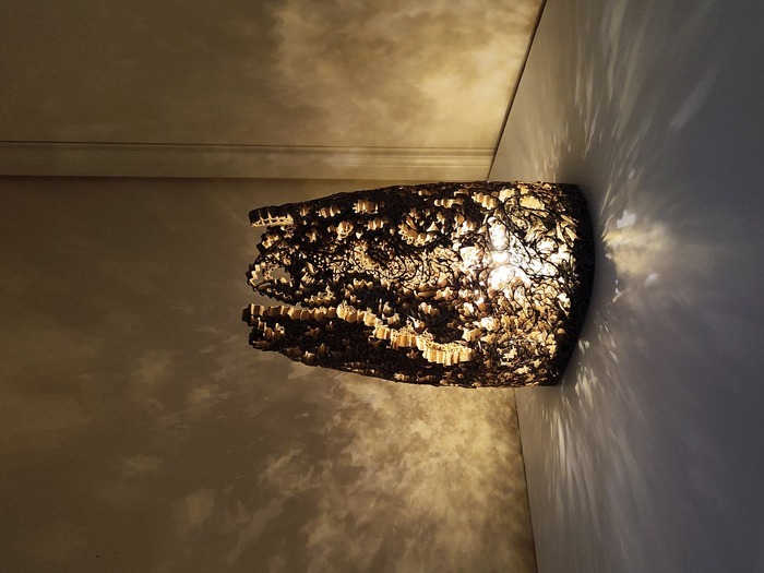 Delicately hand-formed and layered with natural textures, this piece cradles warm, golden fairy lights that glow from within. When lit, it casts intricate patterns across the walls, like flickering memories or the light filtering through leaves. There’s something soothing about it, calming, grounding, yet full of movement and life.