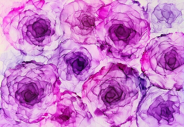Indulge in the captivating beauty of this one-of-a-kind alcohol ink art painting. This stunning original art piece is created using a unique flow and airbrush technique that gives it a soft and fluid appearance. This everlasting flower painting measures 42 x 59 cm (A2). Professionally framed with 99% UV protective glass, this artwork is crafted to preserve its colour and detail, allowing its softness and subtle vibrancy to remain unchanged over time. The measurement of the white frame is 75 x 57 cm.