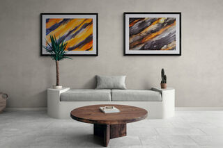 This artwork holds contrast in perfect balance: calm yet alive, grounded yet ready to ignite. It reflects the way nature stores energy below the surface, gathering strength in silence, waiting for the moment to release.
