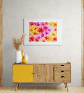 Bring a burst of spring energy into your home with Fields of Joy, a vibrant alcohol ink original by New Zealand contemporary artist Lucie Anderson. Flowing layers of pink, orange, red and yellow bloom across the surface like a radiant field of flowers, celebrating light, colour and movement.